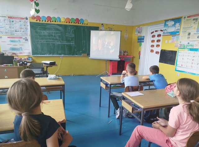 Ученици млађих разреда, са педагогом школе, одгледали су цртани филм ,,Три прасета”.
