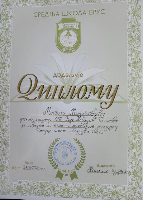 Ученици наше школе учествовали су на ликовном конкурсу „Будући свет“, у организацији Средње школе Брус, и том приликом остварили значајан успех.